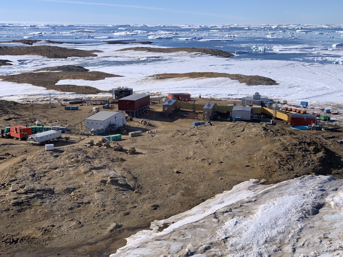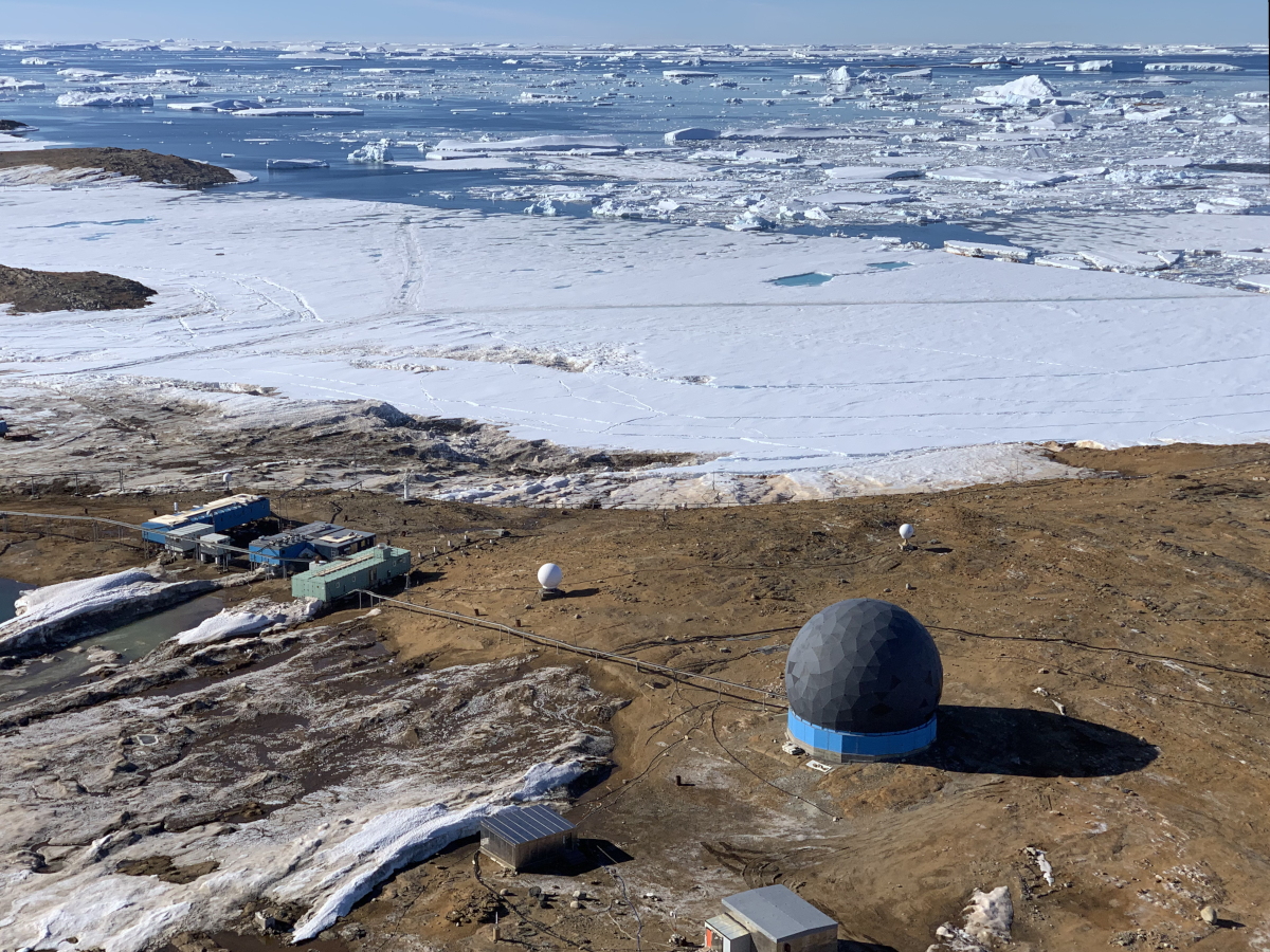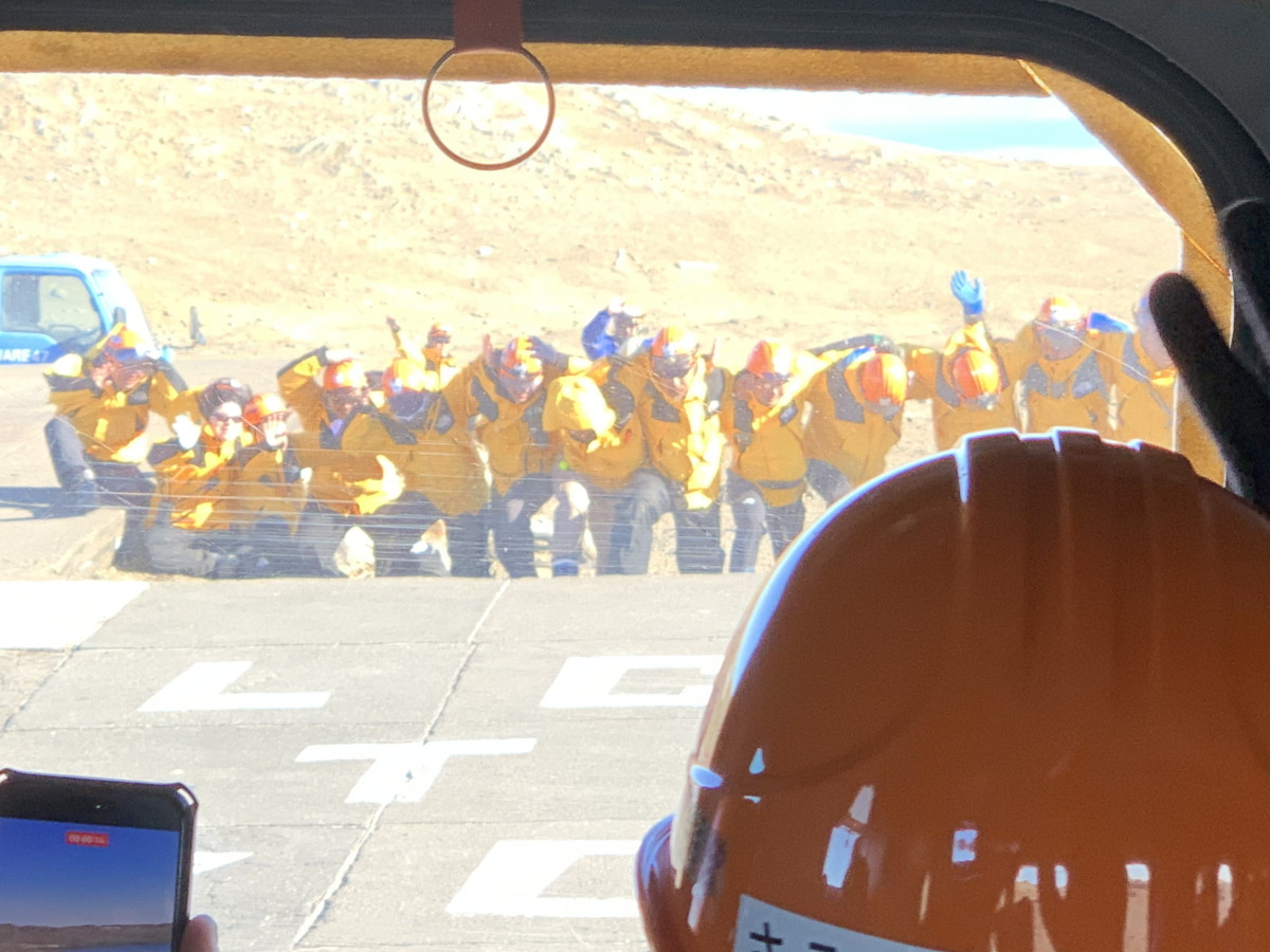我々67次の夏隊も昭和基地を去るときがやってきました.基地に残る越冬隊の仲間と再会を誓い固く握手をした後,ヘリコプターに乗り込み飛び立ちました.ダウンウォッシュの強い風にも負けず,ヘリポートで見送ってくれました.おそらく最後となる昭和基地をこの目に焼き付け,氷が流され,まさしく「島」となった東オングル島をあとにしました.(小)