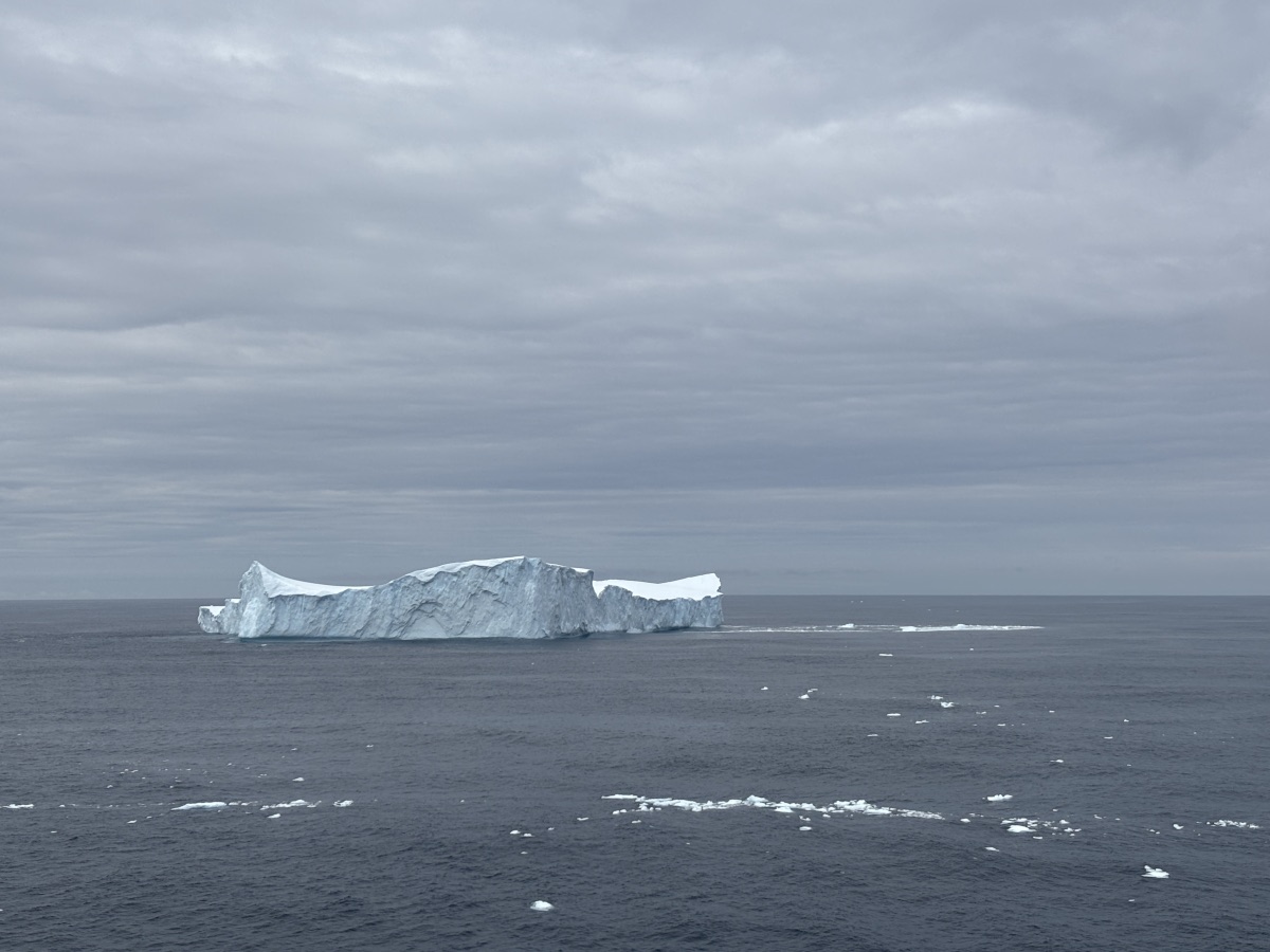 12月14日,初氷山が視認されました.氷山を写真で見たことはありましたが,普段の生活で見るような物体とはあまりにもスケール感が違い過ぎて現実感が無かったです.しらせ船内では初氷山視認時刻当てクイズを行い,一位の方の誤差はなんと5秒でした!!私は誤差8時間,小林先生は誤差30分ほどで残念ながら入賞はなりませんでした..(杉)