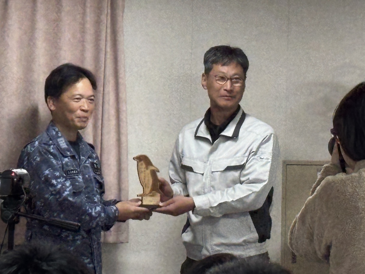 航海中,観測隊員がしらせ乗員向けに講義を行う「しらせ大学」が開講しました.観測隊員も講義を聴講できます.様々な分野の隊員の方々から普段なかなか聞くことができないお話を聞くことができ,とても面白かったです.小林先生は,講義を行った隊員に渡される記念品をしらせの方より頂きました.参加した隊員によると,小林先生の講義は分かりやすかったとのことでした.(杉)