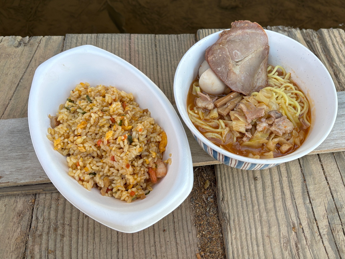 南極観測船しらせからの燃料輸送が行われている間,様々な物資をそりに載せ雪上車で牽引して輸送する氷上輸送が行われていました.海氷上を通る氷上輸送は,気温が下がり氷が締まる夜中に行われます.そんな作業を行う隊員に向けて,前次隊の方が夜食を作ってくださいました.私も夜食のラーメンとチャーハンを頂きました.食べてる間に冷めていってしまうくらい寒かったのですが,体に染み渡る美味しさでした.(杉)