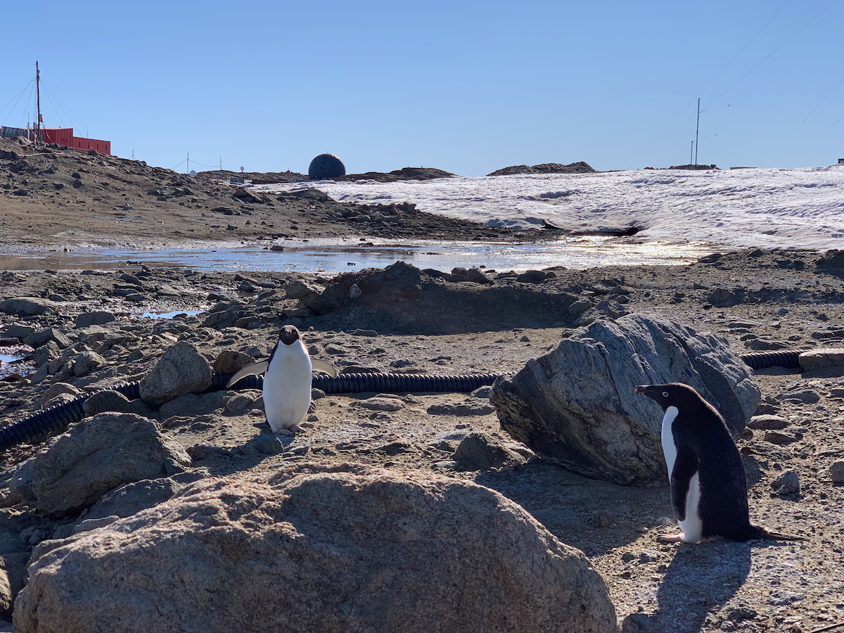 先日の池の調査ではアデリーペンギンとバッタリ出会いましたが,今日も基地に遊びに来ていました.彼らは私たちのことをどのように思っているのか聞いてみたいです.少なくとも怖がっている様子はないので,アザラシなどの他の動物と同列に思っているのかもしれないですね.(小)