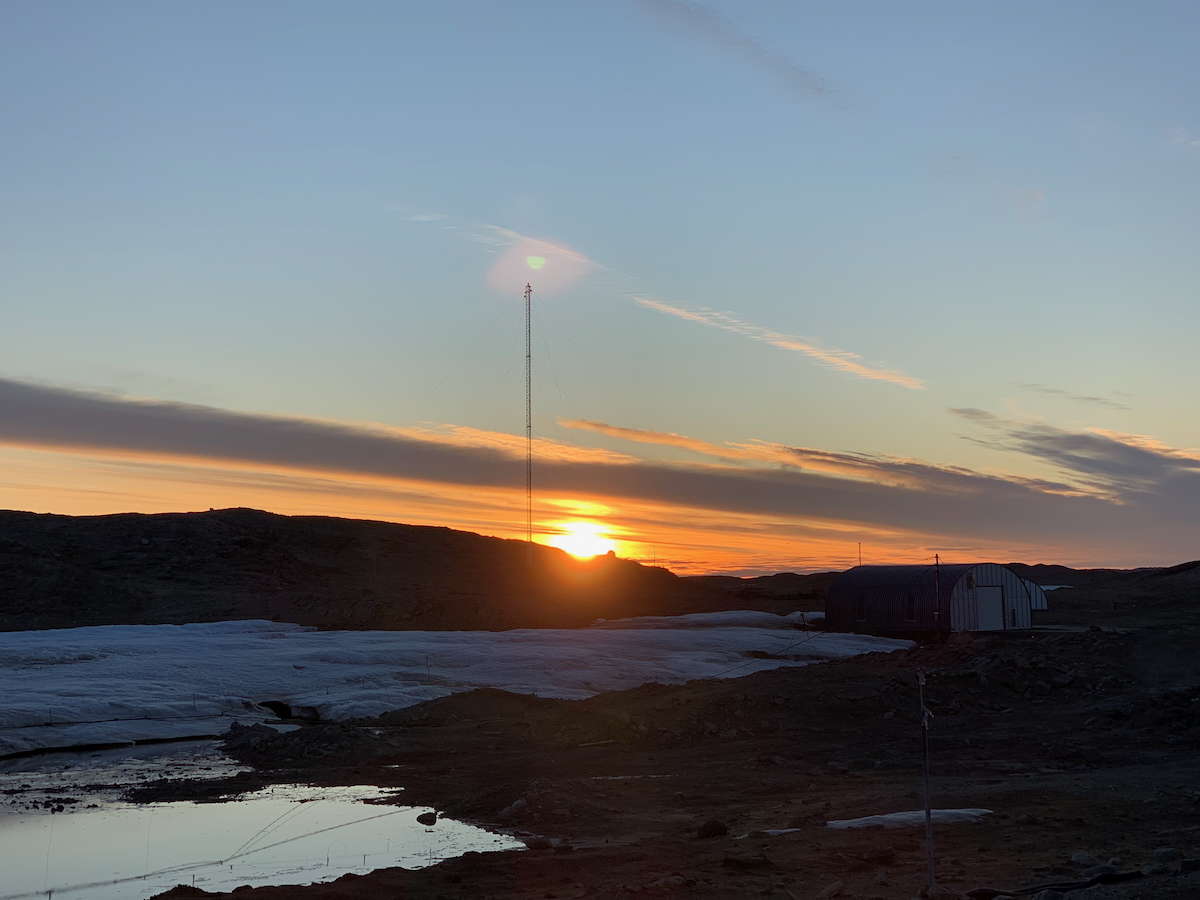 南極は緯度が高いため,夏の間,太陽が沈まない白夜になります.しかし,夏も終わりかけに近づくと太陽は再び地平線に沈み始めます.夏宿へ戻る道すがら,太陽がずいぶん低くなったなと感じるようになりました.(小)
